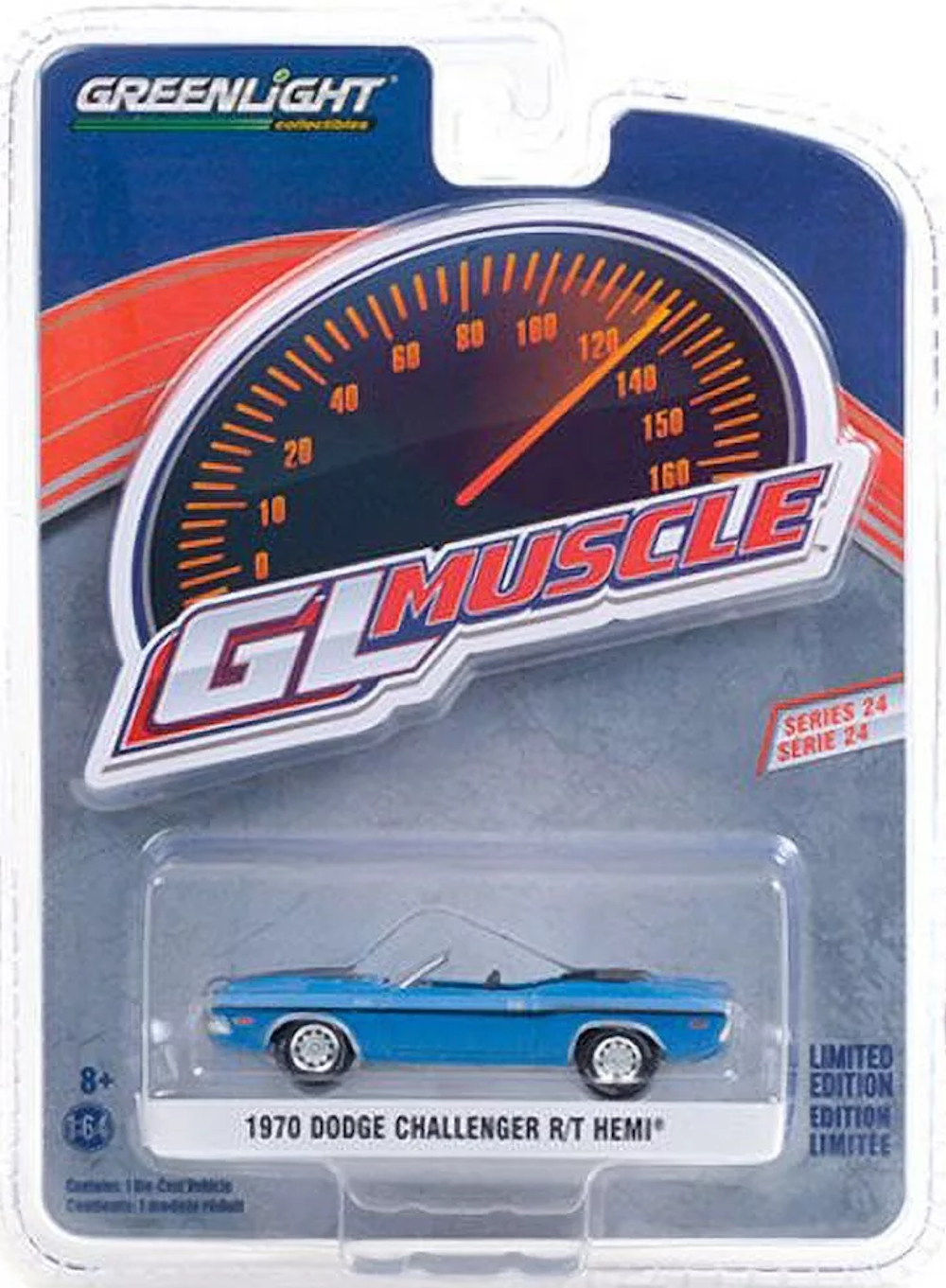 Greenlight Collectibles – 13290-B – 1:64 GL Muscle Series 24 – 1970 Dodge Challenger R/T HEMI – B5 Blue with Black Stripes.