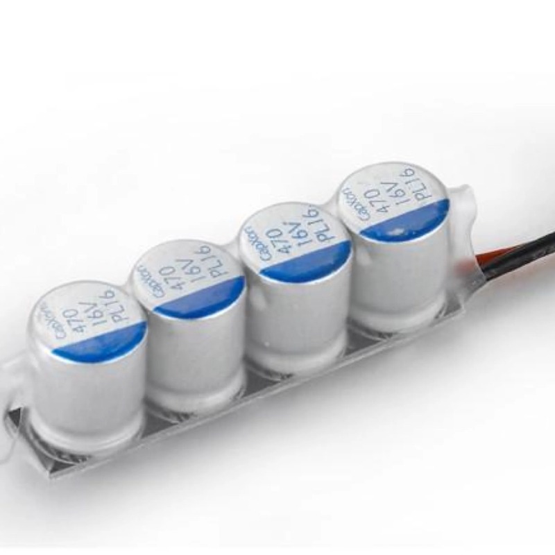 This capacitor module (/cappack) is for “upgrading” your car ESC. With this cappack, the start-up acceleration of your vehicle will be greatly improved. Besides, the great ripple current endurance significantly reduces the generated interference due to the rapid ON/OFF of the ESC power tube.