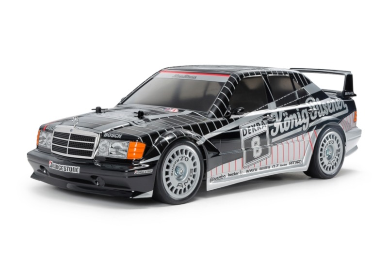 The TT-02 chassis is an easy to build and proven platform. It’s perfect for enthusiasts to begin their hobby journey into the world of R/C 4WD on-road racing or simple parking lot fun with friends. This kit recreates the Mercedes-Benz 190 E 2.5-16 EVO II, which sits on top of the TT-02 chassis as it raced in 1991in the renowned DTM series.