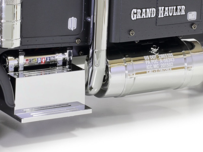 This is a special edition of the Grand Hauler. The R/C model assembly kit recreates a massive boxy, customized truck like those seen in North America. The special edition version is a great option for those without the time or confidence to apply a paint job to their kit, as the body, and other key body parts are pre-painted Metallic black (Tamiya Color TS-40). Additionally, a matte coating is applied over the metallic black which provides a cool look as seen in current trends in the automotive scene.
