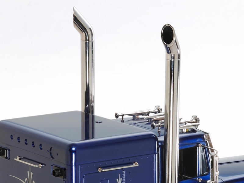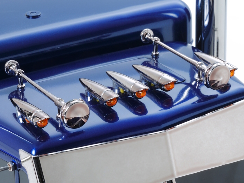 The separately sold Multi-Function Control Unit (MFC) offers light, sound, and vibration operation to accompany your R/C truck experience. Engine sounds have been digitally recorded from the actual truck, and together with air horn, gear shifting, and many other realistic sounds, give you the feeling that you are driving the real thing! Headlights, brake lights, fog lamp, hazard lights and turn signal operations are also at your fingertips.