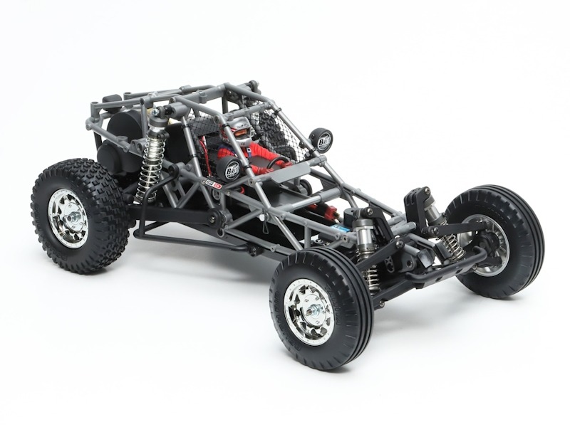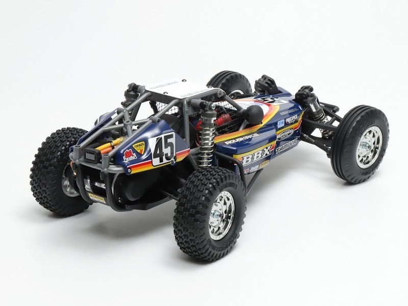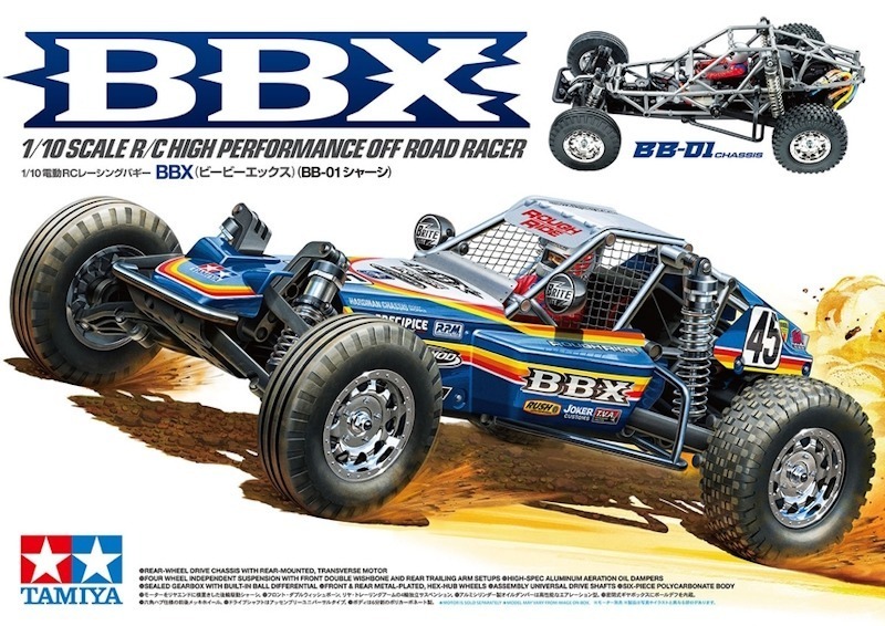 Tamiya’s designers have taken inspiration from its back catalog of iconic 2WD off-road buggies to bring fans of radio control the ALL-NEW BBX! This 1/10 R/C 2WD off-road buggy model features a combination of classic design and modern performance. Its brand-new chassis, reminiscent of 1980’s sand rail dune buggies, is a hybrid monocoque-roll cage and employs rear trailing arm suspension inspired by full-size UTV’s. The new body is designed by famed Japanese artist Atsushi Arino and utilizes a classic 1980’s inspired livery with retro wheels and tires to match!
