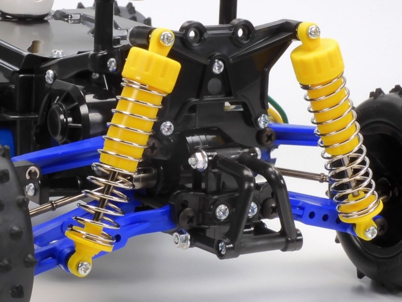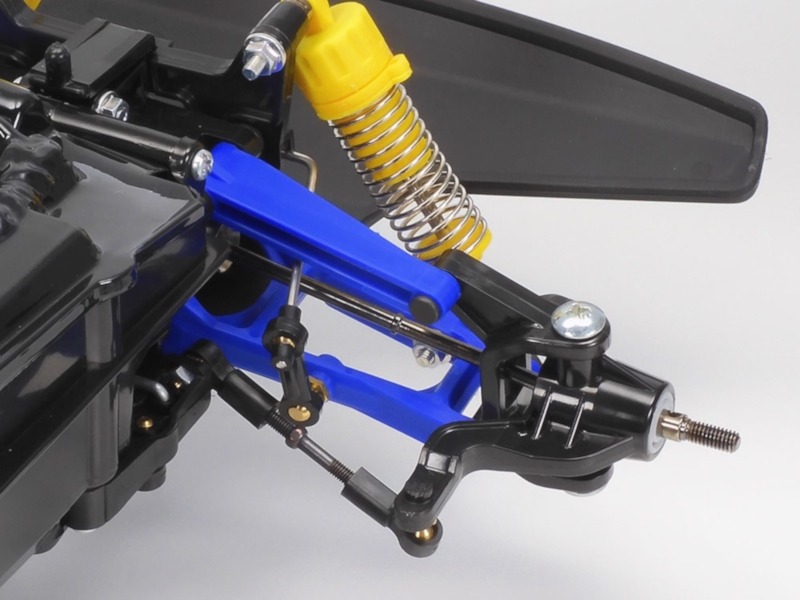 • 4-wheel double wishbone suspension uses CVA oil shock/dampers, and a front stabilizer for a firm setup.