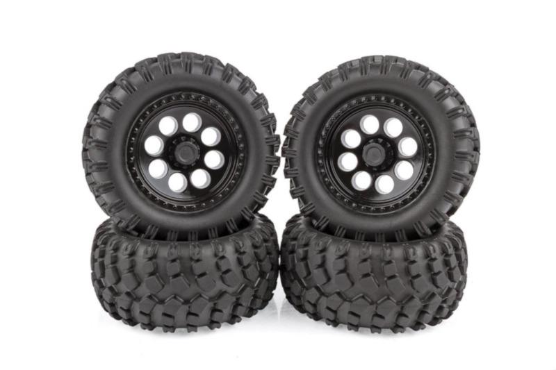 - Black scale 1.9 RC car wheels with soft compound off road tires