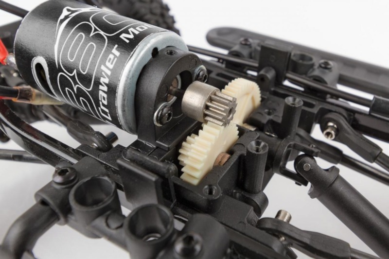 Designed not only for scale looks with realistic wheels, tires and body, the CR12 is built for performance as well. The steel ladder frame chassis provides the perfect backbone for this rugged rig. The 4-link suspension, threaded shocks, and soft rubber tires give the grip and performance needed to climb over the roughest terrain. Transferring power to the rocks is a compact 3-gear transmission, plastic low-friction slider-type drive shafts, front steel CVA axles, and metal-shield ball bearings.